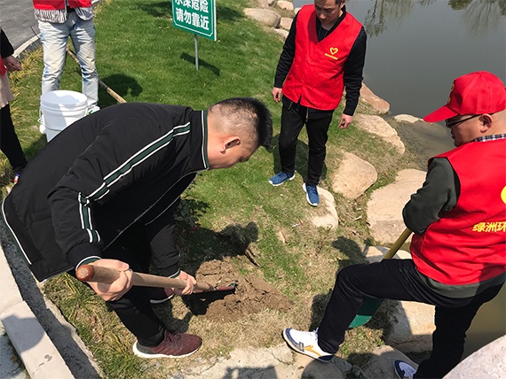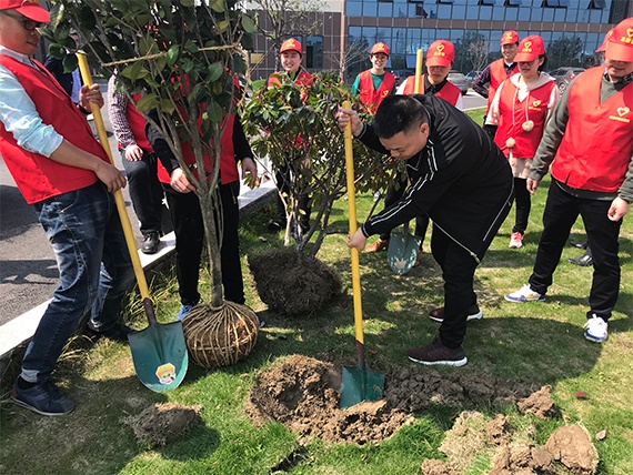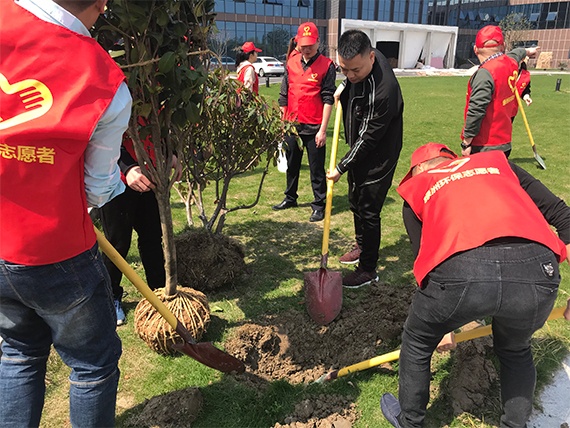 今天,綠洲環(huán)保的員工們在黨員志愿服務(wù)隊的帶領(lǐng)下,進(jìn)行了植樹活動,員工們個個熱情高漲,帶著樹苗、植樹工具,在公司內(nèi)種下紅楓、盤槐、茶花、常春藤等樹種。