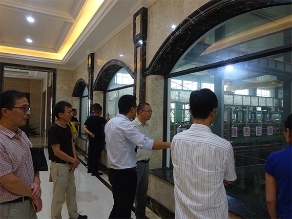 隨后,視察小組通過參觀通道,觀看了餐廚垃圾處置車間現場,并逐一參觀了餐廚垃圾處理運行管理監控系統以及大件垃圾處置車間。