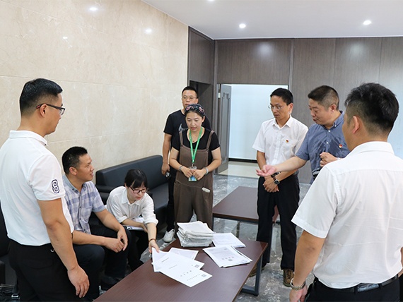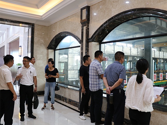 檢查小組先后來到我公司展廳模擬沙盤和參觀通道,通過實地了解我公司的項目生產建設,對我市食品衛生與安全有進一步了解。