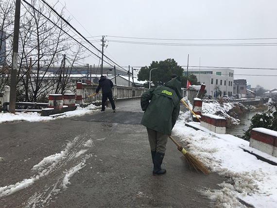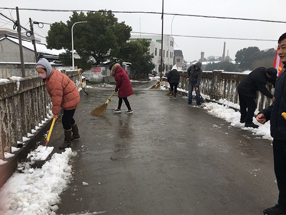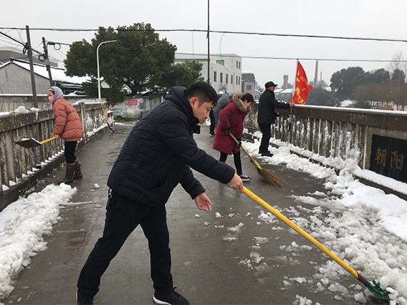 此次綠洲黨員志愿隊由黨支部周順康書記、志愿隊隊長余利鋒同志帶隊,一行8人來到丁橋鎮利群村朝陽橋上清掃積雪。掃除冰雪的熱情高亢,團結互助的背影最美。熱火朝天的勞動過后,大家整個人身體都是暖暖的,也是志愿隊為市民做出一些微貢獻的滿足感。